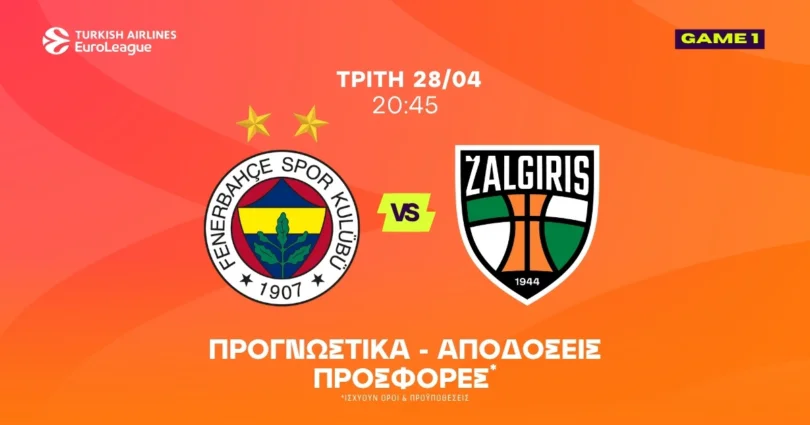Προγνωστικά Φενέρμπαχτσε – Ζάλγκιρις (28/04/2026): Ανάλυση και σημεία για στοίχημα στα προγνωστικά Euroleague σήμερα από το Game 1 της σειράς.