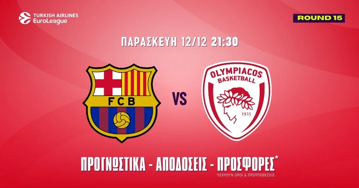 Προγνωστικά EuroLeague με τα καλύτερα σημεία της αναμέτρησης του Μπαρτσελόνα – Ολυμπιακός (12/12/25) στο BetMarket.gr.