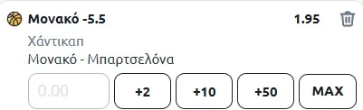 | 06/05, 19:00 | Μονακό – Μπαρτσελόνα | 1 (-5.5) @ 1.95 | ![]() |