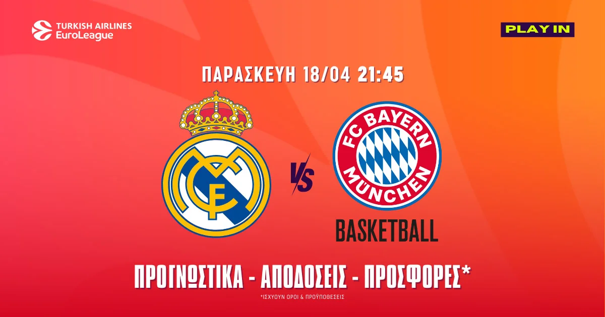 Προγνωστικά Ρεάλ – Μπάγερν στη σημερινή στήλη (18/4/25) του Betmarket.gr με φόντο μία θέση στα playoffs της EuroLeague.