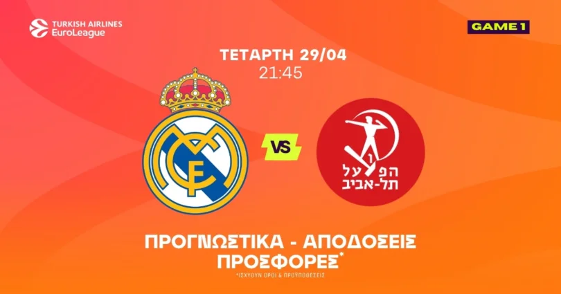Προγνωστικά Ρεάλ Μαδρίτης – Χάποελ Τελ Αβίβ (29/04/2026): Ανάλυση και προγνωστικά Euroleague σήμερα από το Game 1 της σειράς με φόντο την πρόκριση στο Final Four 2026.