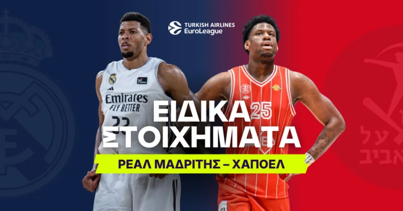 Η Ρεάλ Μαδρίτης αντιμετωπίζει την Χάποελ Τελ Αβίβ για τα playoffs της Euroleague και το BetMarket.gr έχει τις αποδόσεις μπάσκετ της σειράς και τα καλύτερα ειδικά στοιχήματα.