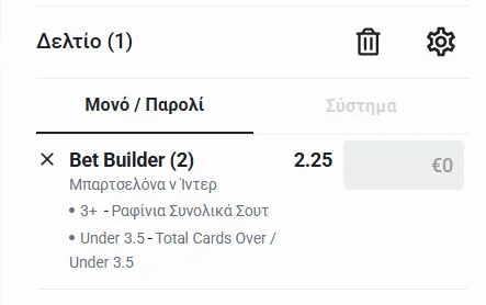 Σε απόδοση 3.00 να επιβεβαιωθεί το εύρος 0-2 κάρτες, δηλαδή under 2,5.