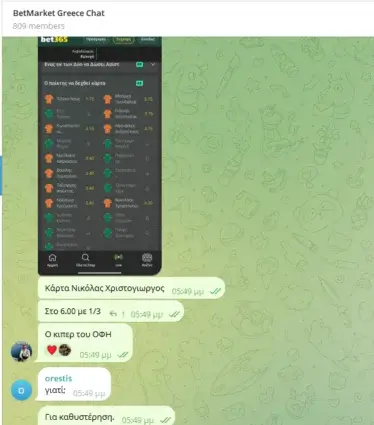 Γιατί το λέω αυτό; Γιατί όσοι βρίσκονται στο Telegram του Betmarket όχι μόνο δεν έχασαν, αλλά είχαν και κέρδος. Καθώς πληρώθηκαν δύο προγνωστικά Live Betting την ώρα των ημιτελικών του Κυπέλλου Ελλάδας Bettson. Το πρώτο σε απόδοση 6.00 (κίτρινη κάρτα στον τερματοφύλακα του ΟΦΗ για καθυστέρηση) και το δεύτερο σε απόδοση 3.05 με την κάρτα στον Σωτήρη Κοντούρη του Παναθηναϊκού. Αν θες και εσύ να πληρώνεσαι τέτοια σημεία, έλα στην παρέα μας (ένα μόλις κλικ μακριά είσαι:P)!