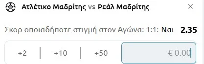 Εν τω μεταξύ, υπάρχει ένα ενδιαφέρον στατιστικό στοιχείο στις μεταξύ τους αναμετρήσεις. Συγκεκριμένα, στις 7/8 ανεξαρτήτως έδρας και διοργάνωσης επιβεβαιώθηκε το 1-1 ως ακριβές σκορ οποιαδήποτε στιγμή στον αγώνα! «Έσπασε» πέρυσι στα προημιτελικά του Τσάμπιονς Λιγκ λόγω χαμένου πέναλτι του Βινίσιους στο 70’ (1-0 τελικό υπέρ της Ατλέτικο)! Αυτό χάλασε και το 12/12 στο Goal/Goal. Επίσης, το 1-1 εμφανίστηκε και στις 5/6 μεταξύ τους συναντήσεις σε κυπελλικές διοργανώσεις (Copa del Rey, Supercopa και UEFA Super Cup)! Τέλος, το ίδιο συνέβη και στα 4/6 ενενηντάλεπτα της Ατλέτικο σε Primera Division και Champions League. Εξάλλου, η Winmasters έχει την καλύτερη απόδοση από όσες στοιχηματικές εταιρίες προσφέρουν την εν λόγω επιλογή και σαφώς θα το ποντάρουμε εκεί.