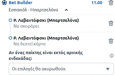 Στο Bet Builder απόδοσης 11.00 βάζουμε 20 μονάδες.