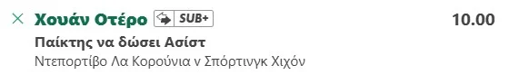 ΙΣ2 – 06/09 – 17.15 – Λα Κορούνια – Χιχόν – Over 0.5 ασίστ Οτέρο (10.00) με 5 μονάδες.