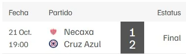 Στο 90+5’ ο Φερνάντες κατέβασε την μπάλα μέσα στην περιοχή της Νεκάξα και την ώρα που πήγε να… εκτελέσει από το ένα μέτρο τον κίπερ αυτής, Ουνσάιν, εμφανίστηκε ο αρχηγός της Κρουζ Αζούλ, Ριβέρο κι έστειλε αυτός την μπάλα στα δίχτυα κάνοντας το 2-1 για την ομάδα του! Μόνο, όμως, που ήταν σε θέση οφσάιντ! Το γκολ δε μέτρησε, το ματς έληξε 1-1 κι εμείς ζήσαμε έναν ακόμη απίθανο τρόπο που χάθηκε το ταμείο! Χρεώθηκε και τζάμπα μία κάρτα, καθώς «κιτρινίστηκε» από τον ρέφερι, επειδή έβγαλε τη φανέλα! Εν τω μεταξύ, το μυθικό ήταν ότι ένα από τα κορυφαία σάιτ στο Μεξικό (Mediotiempo) καταχώρησε το σκορ (και το διατήρησε) ως 2-1 υπέρ της Κρουζ Αζούλ! Συμβαίνουν αυτά και στις καλύτερες οικογένειες!