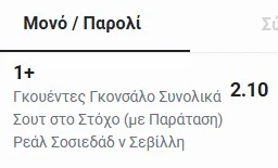 ΙΣ1 – 24/10 – 22.00 – Σοσιεδάδ – Σεβίλλη – 1+ σουτ στον στόχο Γκέντες (2.10) με 10 μονάδες.