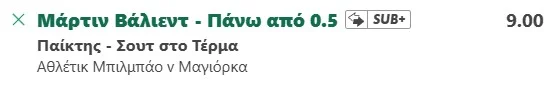 ΙΣ1 – 04/10 – 19.30 – Μπιλμπάο – Μαγιόρκα – Over 0.5 σουτ στο τέρμα Βάλιεντ (9.00) με 5 μονάδες.