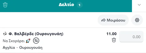 Από τη μεριά της Ουρουγουάης, θα ασχοληθούμε με τον Φεντερίκο Βαλβέρδε που είναι ένας εμβληματικός μεσοεπιθετικός που δοκιμάζει τα πόδια του και συνηθίζει να σκοράρει. Με την Ρεάλ Μαδρίτης σκόραρε 6 φορές στα 5 τελευταία (χατ-τρικ με Μάντσεστερ Σίτι, Θέλτα, Ελτσε και Ατλέτικο Μαδρίτης την περασμένη Κυριακή), ενώ «σημάδεψε» εστία και στα 5 τελευταία του παιχνίδια. Να κάνει μόλις ένα σουτ στο τέρμα βρίσκεται σε απόδοση 2.38.