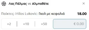 ΙΣ2 – 21/11 – 21.30 – Λας Πάλμας – Αλμπαθέτε – Γκολ με κεφαλιά Λούκοβιτς (18.00) με 5 μονάδες.