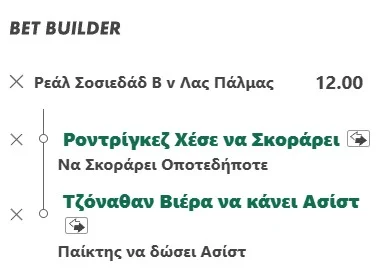 Μιας και αναφερθήκαμε στους Χεσέ και Βιέρα θα κάνουμε και ένα ποντάρισμα πάνω τους, διότι οφείλουν να οδηγήσουν στη νίκη τη Λας Πάλμας ως οι πιο έμπειροι και καλύτεροι παίκτες του ρόστερ. Επίσης, για να αποδείξουν ότι είχαν δίκιο που «κατσάδιασαν» τον προπονητή τους μεσοβδόμαδα. Θα βάλουμε, λοιπόν, τον πρώτο να σκοράρει και τον δεύτερο να του… σερβίρει το γκολ. Εξάλλου, μπορεί να πέρασαν τα χρόνια και για τους δύο, αλλά ακόμη και τώρα παραμένουν τοπ ποδοσφαιριστές για τα γήπεδα της Segunda. Απόψε, έχουν την ευκαιρία να το υπενθυμίσουν σε όλους μας «καθαρίζοντας» τη νεοφώτιστη!