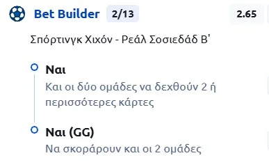 Εξάλλου, ρέφερι της αναμέτρησης είναι ο Μάγιο Φερνάνδεζ, ο οποίος σφύριξε και την αναμέτρηση του πρώτου γύρου (1-0 η Χιχόν)! Τότε έδειξε 9 κάρτες και οι 2 ήταν στη νεοφώτιστη, την οποία διαιτήτευσε στο πρόσφατο 0-2 με τη Γρανάδα (5-5 οι κάρτες)! Επίσης, έχει 103 σε 17 αγώνες φέτος (και 5 πέναλτι)! Επιπλέον, ο μέσος όρος της Χιχόν είναι στο 2.2 και της Σοσιεδάδ Β στο 3.2. Στο 1.55 το 2+ κάρτες αμφότερες στη Stoiximan. Το συνδυάζουμε με το Goal/Goal (1.72) και φτιάχνουμε ένα ωραιότατο Bet Builder. Εξάλλου, η φιλοξενούμενη σκόραρε στις 7/8 εξόδους και η γηπεδούχος στα 9/10 στο «Μολινόν» σε επίπεδο Segunda.