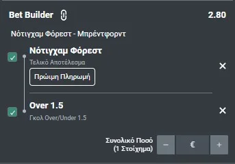 ΑΓΠ – 1/5, 21:30 – Νότιγχαμ – Μπρέντφορντ: 1 & Over 1.5 @ 2.80, με 20 μονάδες στη winmasters