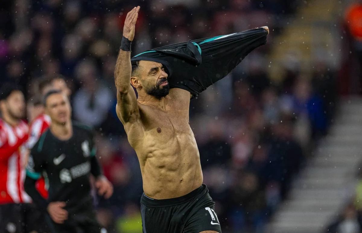 Στις 24 Νοεμβρίου του 2024, η Λίβερπουλ χάνει με 2-1 στο Σαουθάμπτον στο 56΄. Τότε, αναλαμβάνει ο Αιγύπτιος. Ισοφαρίζει αρχικά στο 65’ και κάνει την ανατροπή στο 83’ από τα 11 μέτρα. Τότε, πανηγυρίζει μπροστά στους οπαδούς της και βγάζει την φανέλα. Κιτρινίζεται. H Λίβερπουλ, τότε, αποκτά προβάδισμα για τον τίτλο. Αρκετά ισχυρό, εκμεταλλευόμενη το δώρο της… Τότεναμ (που θα υποδεχτεί την Κυριακή και θα έχει το μυαλό της στο ματς με την Μπόντο Γκλιμτ) και μία ημέρα πριν είχε «αλώσει» το Μάντσεστερ με την 4αρα επί της Σίτι.