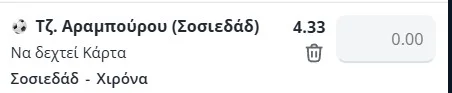 ΙΣ1– 12/12 – 22.00 – Σοσιεδάδ – Χιρόνα – Να δεχτεί κάρτα ο Τζ. Αρανμπούρου (4.33) με 10 μονάδες.