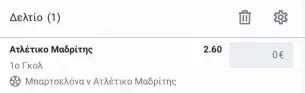 | 02/12, 22:00 | Μπαρτσελόνα – Ατλέτικο | Πρώτη γκολ Ατλέτικο @2.60 | ![]() |