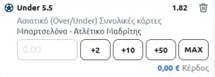 | 02/12, 22:00 | Μπαρτσελόνα – Ατλέτικο | Under 5.5 κάρτες @1.82 | ![]() |