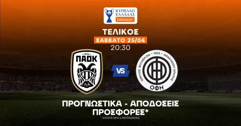 Προγνωστικά ΠΑΟΚ – ΟΦΗ (25/04/2026): Ο μεγάλος τελικός του Κυπέλλου Ελλάδας Betsson έφτασε. Ο ΠΑΟΚ στοχεύει στην κατάκτηση του 9ου Κυπέλλου της ιστορίας του και του πρώτου μετά το 2021, ενώ ο ΟΦΗ συμμετέχει για δεύτερη διαδοχική χρονιά σε τελικό, διεκδικώντας το δεύτερο τρόπαιο της ιστορίας του στον θεσμό, με το προηγούμενο να χρονολογείται από το 1987.