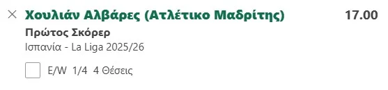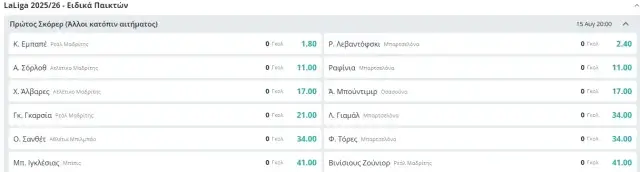 Δύο μονά στα σημερινά προγνωστικά στοιχήματος για την ανάδειξη του πρώτου σκόρερ στην Primera Division (02/08/25).