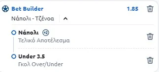 ΙΤΑ – 11/5, 22:00 – Νάπολι – Τζένοα: 1 & Under 3.5 @ 1.85, με 30 μονάδες στη stoiximan