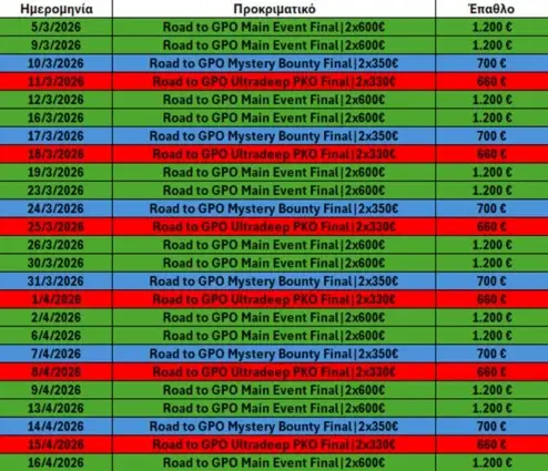 Καθημερινά θα τρέχουν freerolls και steps ξεκινώντας από 0.25€ τα οποία θα οδηγούν στα τελικά προκριματικά.